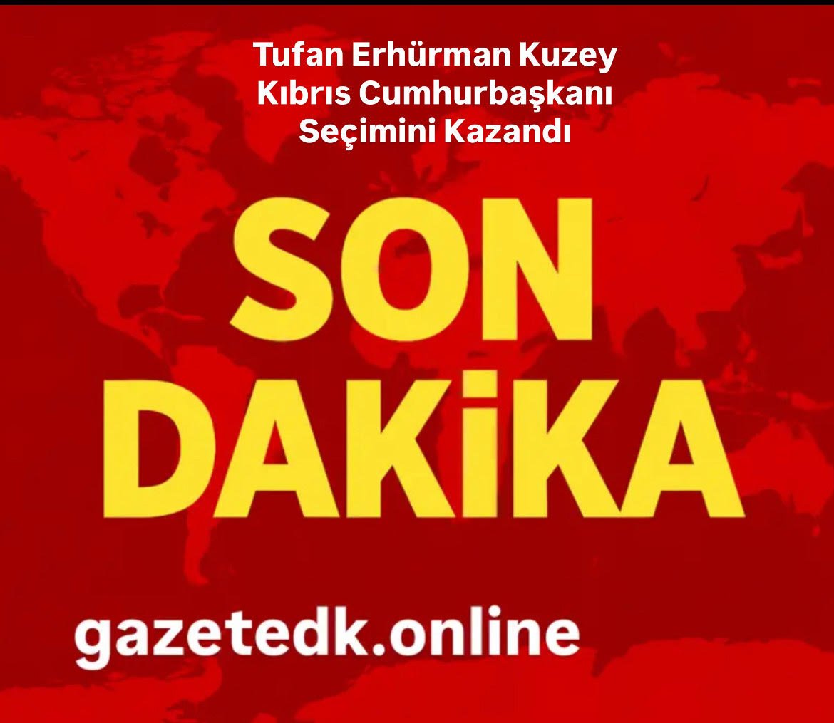 Kuzey Kıbrıs Türk Cumhuriyeti’nde bugün yapılan cumhurbaşkanlığı seçimlerini Tufan Erhürman kazandı. Seçimde oyların yaklaşık %62,8’ini alan Tufan Erhürman, mevcut Cumhurbaşkanı Ersin Tatar’ı geride bıraktı.