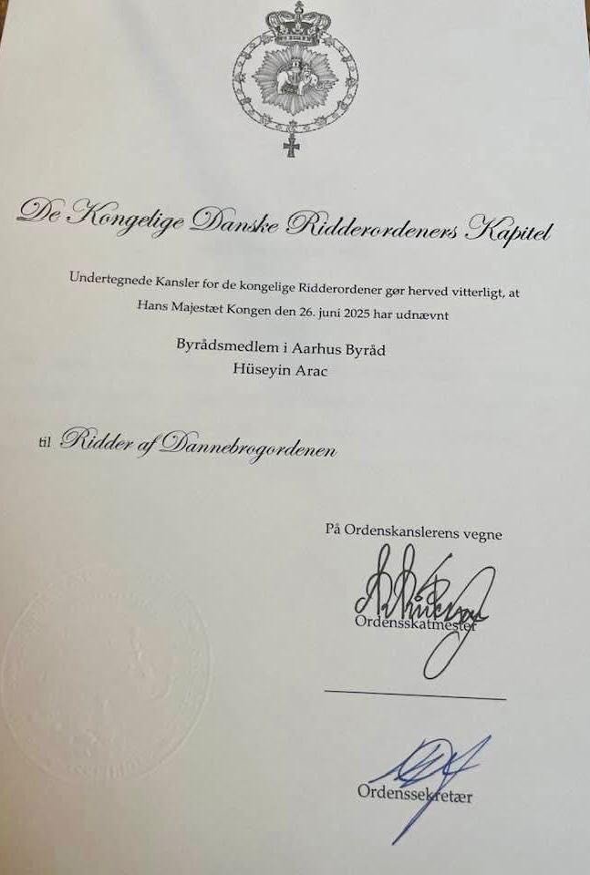 Bu nişan, Araç’ın 40 yılı aşkın süredir Aarhus ve Danimarka toplumuna hizmet eden bir lider olarak gösterdiği olağanüstü katkıların resmi bir takdiri niteliği taşımaktadır. Hüseyin Araç, sadece Danimarka’da yaşayan Türkler için değil, tüm gurbetçiler için bir rol model olmayı sürdürüyor.